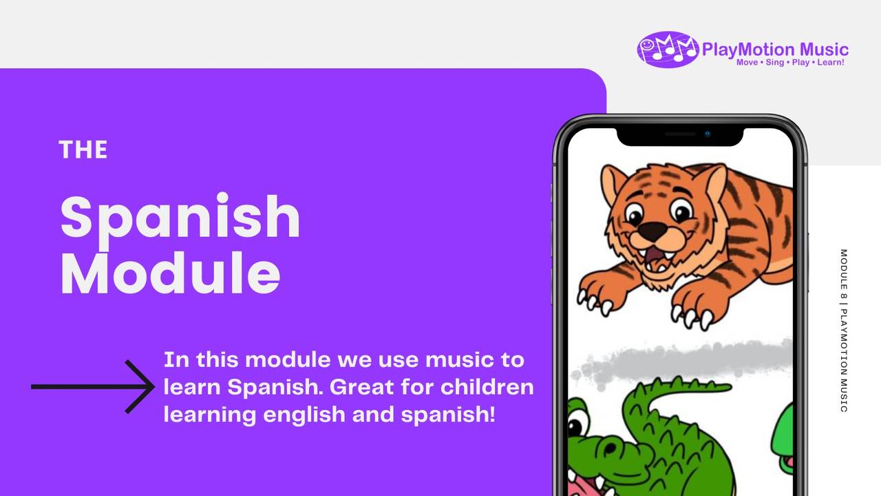 Music is a powerful tool for children’s learning. In this module we use music to learn Spanish. Children who already speak Spanish and are learning English will benefit as well.